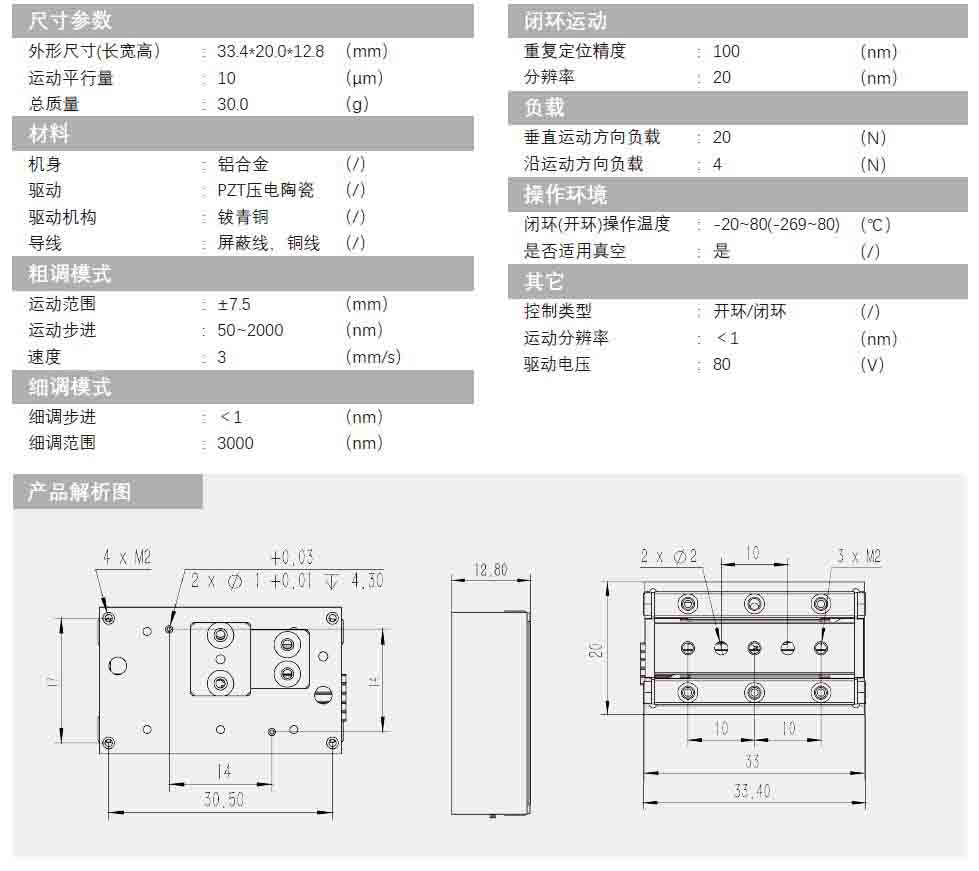 线性压电位移台-ML系列 ML-15A 分辨率20nm,适用真空环境。